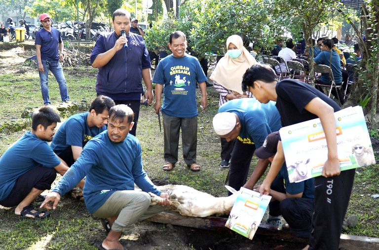 Saat bersamaan, Layanan Kantor Lazismu RS PKU Yogyakarta dan Gamping mendistribusikan 16 ekor kambing ke SLB Muhammadiyah se-DIY.