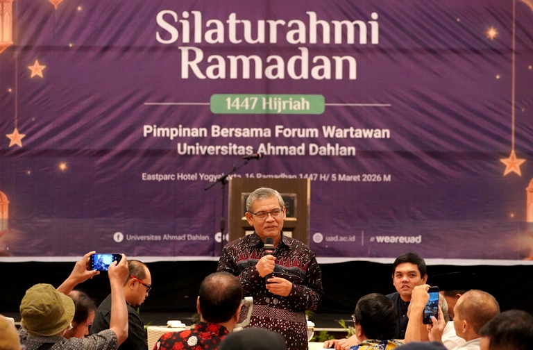 “Media sebagai mitra strategis telah memberikan bantuan luar biasa dalam aspek publikasi dan penguatan citra institusi,” kata Profesor Muclas pada acara buka puasa bersama jajaran pimpinan universitas dan Forum Wartawan UAD di Eastparc Hotel, Jalan Laksda Adisucipto Km 6,5 (5/3/2026).