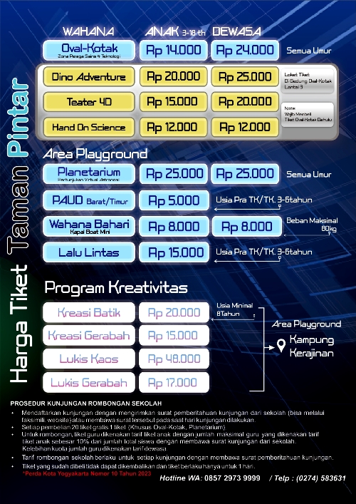 Kini telah dibuka layanan pemesanan tiket online bagi siapa saja yang ingin mengunjungi Taman Pintar Yogyakarta.